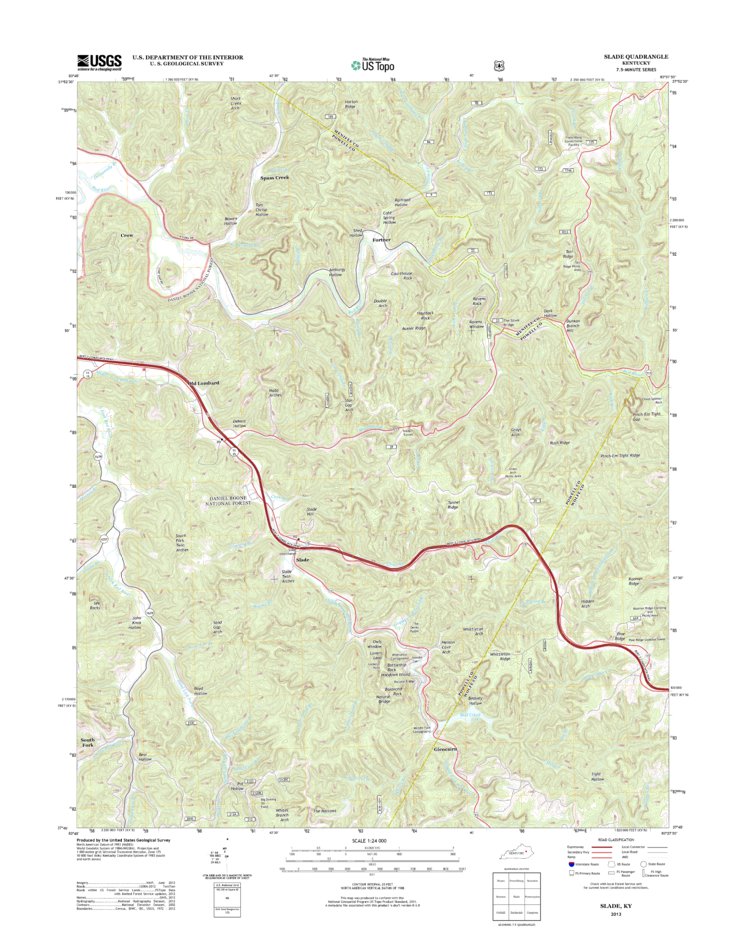 Slade, KY (2013, 24000 Scale) Map by United States Geological